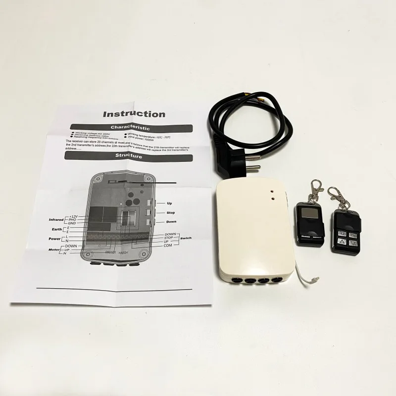 롤러 도어가 아래쪽으로 움직일 때 사진 전기 스위치가 장애물을 감지하면 멈출 것입니다. 이 순간 수신기나 리모콘의 UP 버튼을 누르면 문이 올라갈 수 있지만 장애물이 제거될 때까지 아래쪽 버튼을 누르면 내려갈 수 없습니다.
